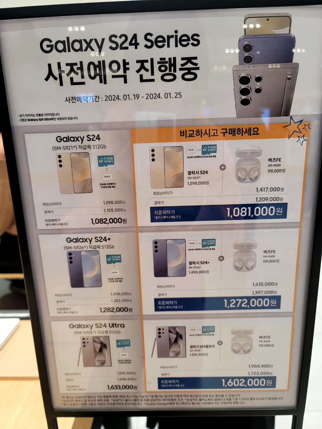 갤럭시 S24 사전예약을 소식을 듣고 주말에 근처 삼성 스토어에 다녀왔습니다.